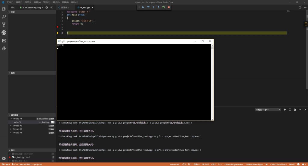 1. 检查”miDebuggerPath”的路径(launch.json),一定要是自己MinGW的路径。注意路径使用两个反斜杠“\”。 ( D:\\MinGW\\mingw32\\bin\\gdb.exe )