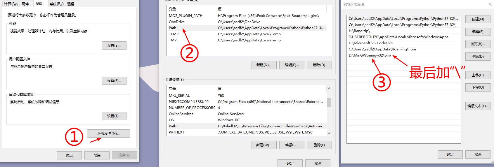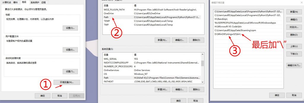 2. 检查环境变量的路径,在bin后面还要加上一个斜杠“\”,并且更改要重启软件后才能生效。